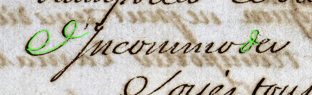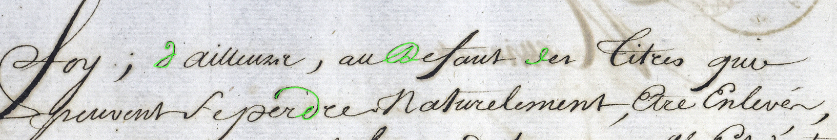 Attention, la lettre D peut se télescoper avec d’autres lettres, telles que le E ou le R. Ceci rend plus difficile la reconnaissance des lettres. Une analyse fine des traits constituants les lettres et de leur déformation possible est alors nécessaire.