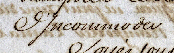 La première image montre le texte. Vous pouvez essayer de repérer les D. Dans la deuxième, les D sont surlignés en vert. Repérez leur emplacement, revenez si besoin à la première vue pour bien observer la forme de la lettre. La troisième image vous indique en orange les télescopages de lettres, les lettres précédant le D qui influencent la forme de ce dernier.